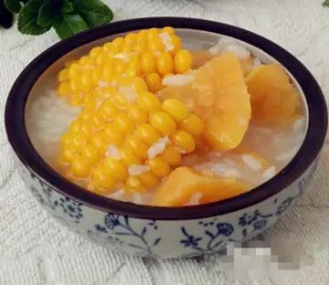 4)煮沸后加切好的南瓜5)将玉米粒倒入粥中