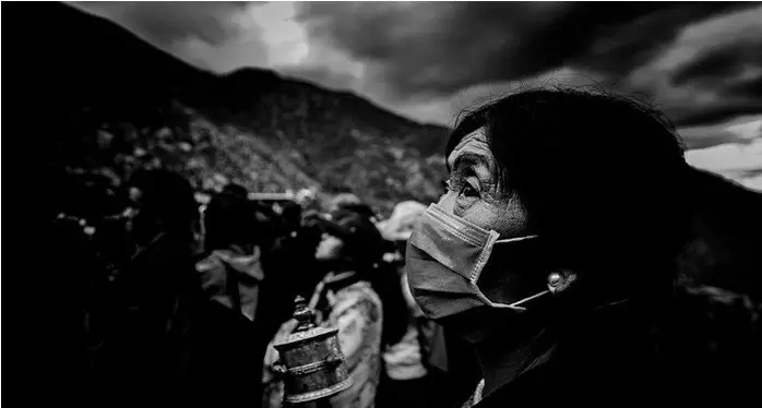 虔诚,这张照片的点睛之笔在于那个眼神,所有的虔诚与苦难都在那一抬眸的瞬间得到体现,作者使用黑白色调更加重了整体气氛的沉重感。