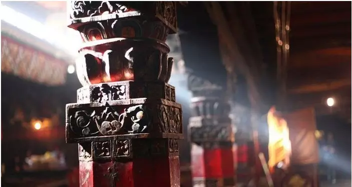梦醒大昭寺,一道光线射入画面,营造出神秘的气氛,作者熟练的运用对角线构图让画面具有稳定感。