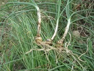 又名薤白、薤根,藠子,小独蒜,薤白头小蒜、小根菜:呈不规则卵圆形,表面黄白色或淡黄棕色,底部有突起的鳞茎盘。它的茎叶长得很像蒜,也有葱、蒜的味道,主要吃法有拌豆腐、炒腊肉、炒鸡蛋、小蒜白木耳粥等。野蒜能通阳散结、行气导滞。常食对降低血糖有益。