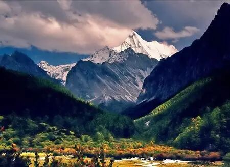 这里有高耸入云的雪山,原始茂密的森林,辽阔宁静的草原,雄伟壮观的峡谷;这里有奔腾咆哮的江河,碧波荡漾的湖泊,奇特美丽的建筑,世外桃源般村落。