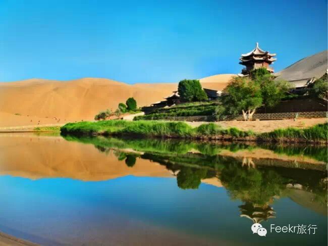 绿色·月牙泉,它是茫茫沙漠中的一片绿洲,支撑着驼队继续前行。它似夜