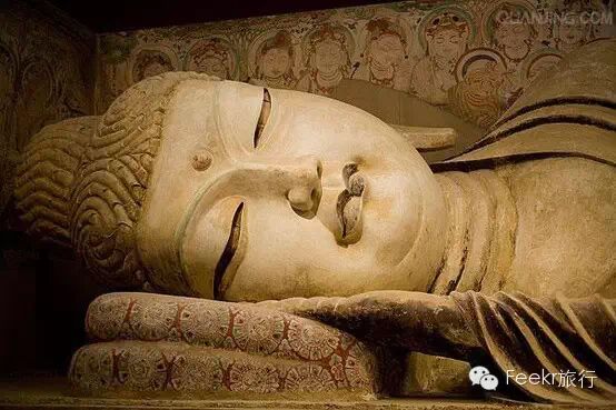 ▶ 必看景点二:莫高窟148窟的卧佛,长14.7米,也是莫高窟不得不看的一个窟,它完成于公元776年唐朝时期。佛陀的肉身虽已入灭,但精神却达到了一种不生不死,永不轮回的境界,这也是佛教徒们所追求的终极目标。