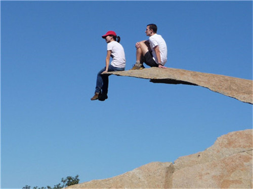 在美国加利福尼亚州著名的沿海城市圣迭戈附近,有一块非常薄的岩石。这块看似一折就断的石头引来了许多人前来拍照,游客好像置身在悬崖边,或是云端。这得有多大的勇气才敢坐在这块石头上拍照呢?