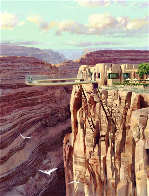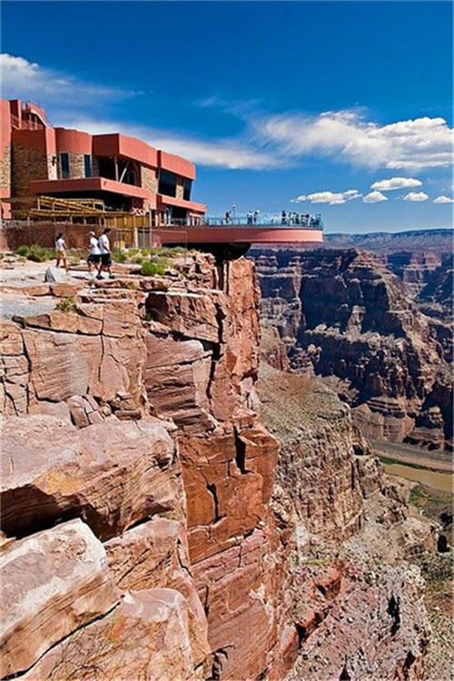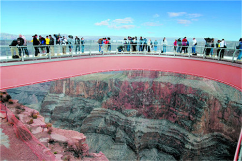 空中玻璃走廊(Skywalk)坐落于美国科罗拉多大峡谷西侧的一个印第安部落居留地内,距赌城拉斯维加斯大约200公里,悬空于科罗拉多河(Colorado River)4000英尺(1219米)之上,向大峡谷悬崖以外延伸70英尺(21.34米)。