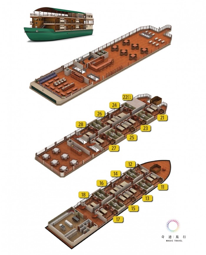 “亚马逊之星”“亚马逊之星” 是一艘专门航行于秘鲁北部亚马逊河、全新现代化的高级河轮,她的崭新设计提供旅客在世界最大的热带雨林区一种舒适的感受。面积达一千平方呎,位在顶层的开放式观景甲板的交谊厅、开放式酒吧及阳光甲板,是航行于亚马逊河船只中最大的户外观景台。船舱分布图